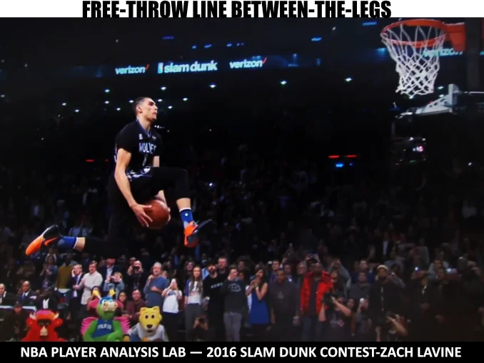 まずは、ラヴィーンの驚異的な「フリースローラインからの股抜きダンク」を解析。