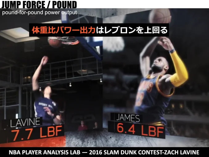 ESPNのスポーツサイエンスで解析したところ、ラヴィーンのジャンプの体重比パワー出力はレブロン・ジェームズを約20%上回ると推定されました。